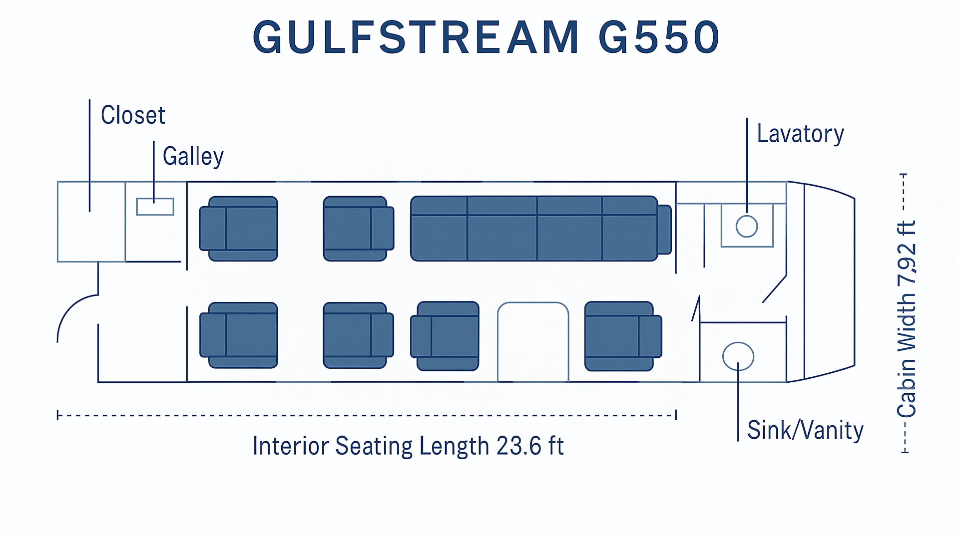 Powered by efficient Rolls-Royce engines, the Gulfstream G550 offers impressive speed, range, and fuel efficiency. Its advanced aerodynamics and pressurization system ensure smooth handling and top-tier performance—setting the standard in long-range business aviation.
