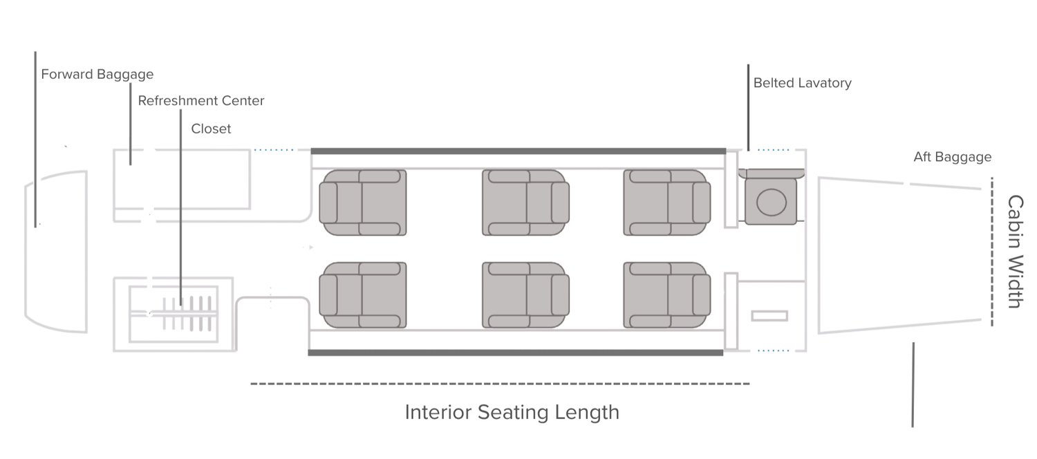 Super-midsize jets seat 8–12 and offer 6–7 hours of nonstop flight in spacious comfort.