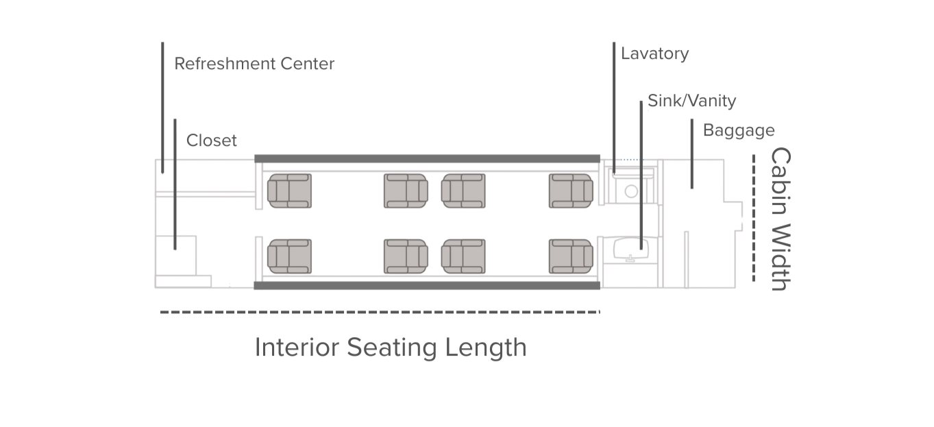 Large jet size seats 10–16 for an average of 6–9 hours nonstop in spacious, premium comfort.