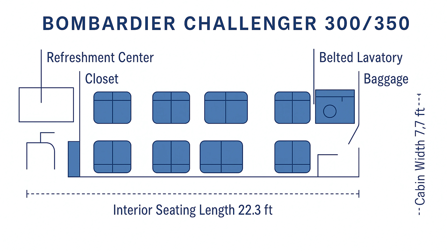 The Challenger 350, delivers luxury, performance, and efficiency with a spacious cabin, coast-to-coast range, advanced safety, and high-speed connectivity.